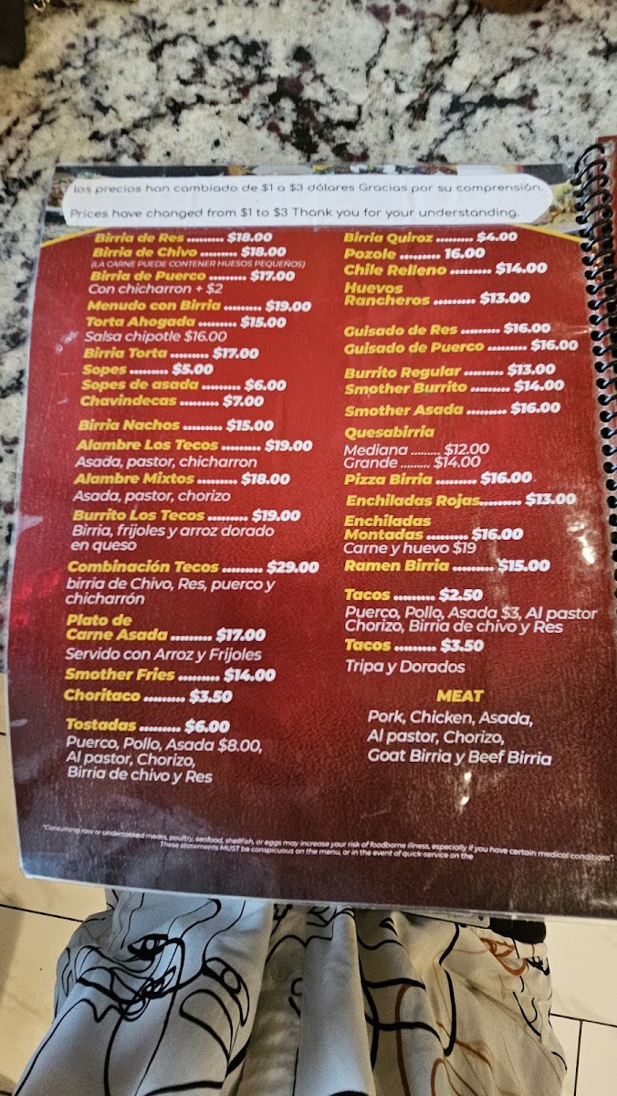 Birrieria Y Taqeria Los Tecos Menu